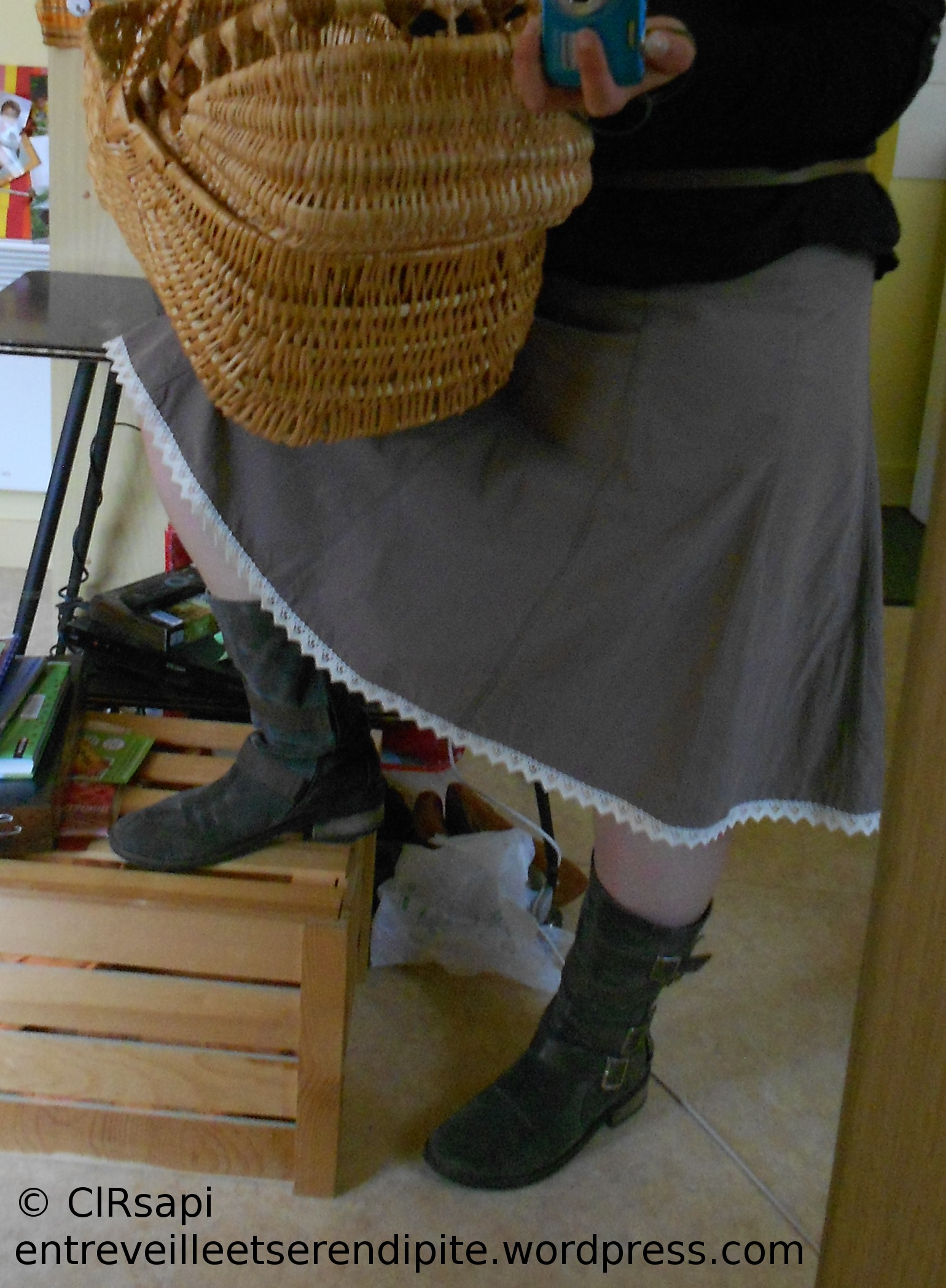 J’ai acheté une jupe, il y a quelque temps, dans une friperie en vue d’une des nombreuses fêtes de famille à venir. Elle me tombait bien (chose rare pour moi !) mais je trouvais qu’il manquait quelque chose, mais quoi ?!??
