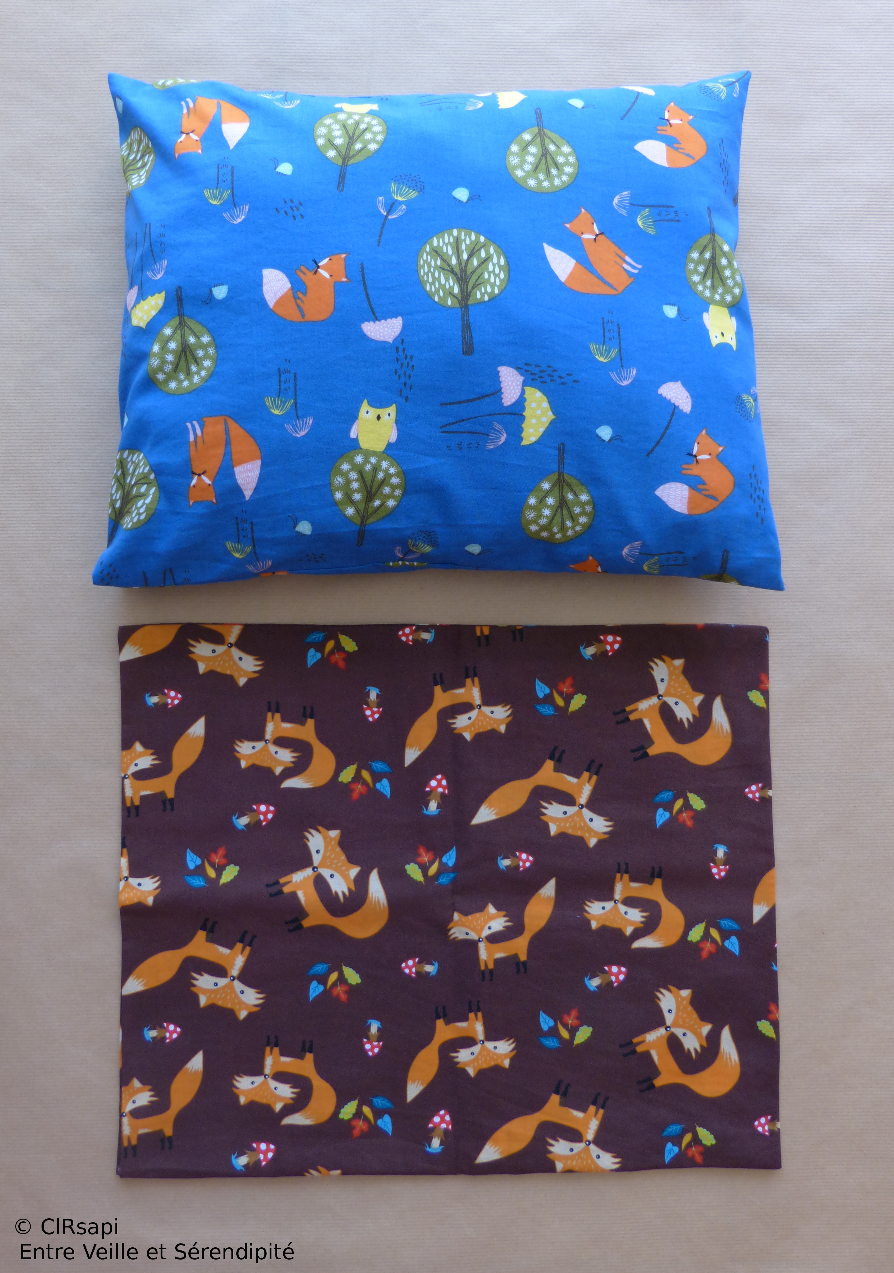 Je me suis dit qu’il serait plus facile pour ma soeur si elle pouvait avoir un jeu de taies. Du coup, mon neveu à le choix entre les renards à l’automne ou les renards au printemps !