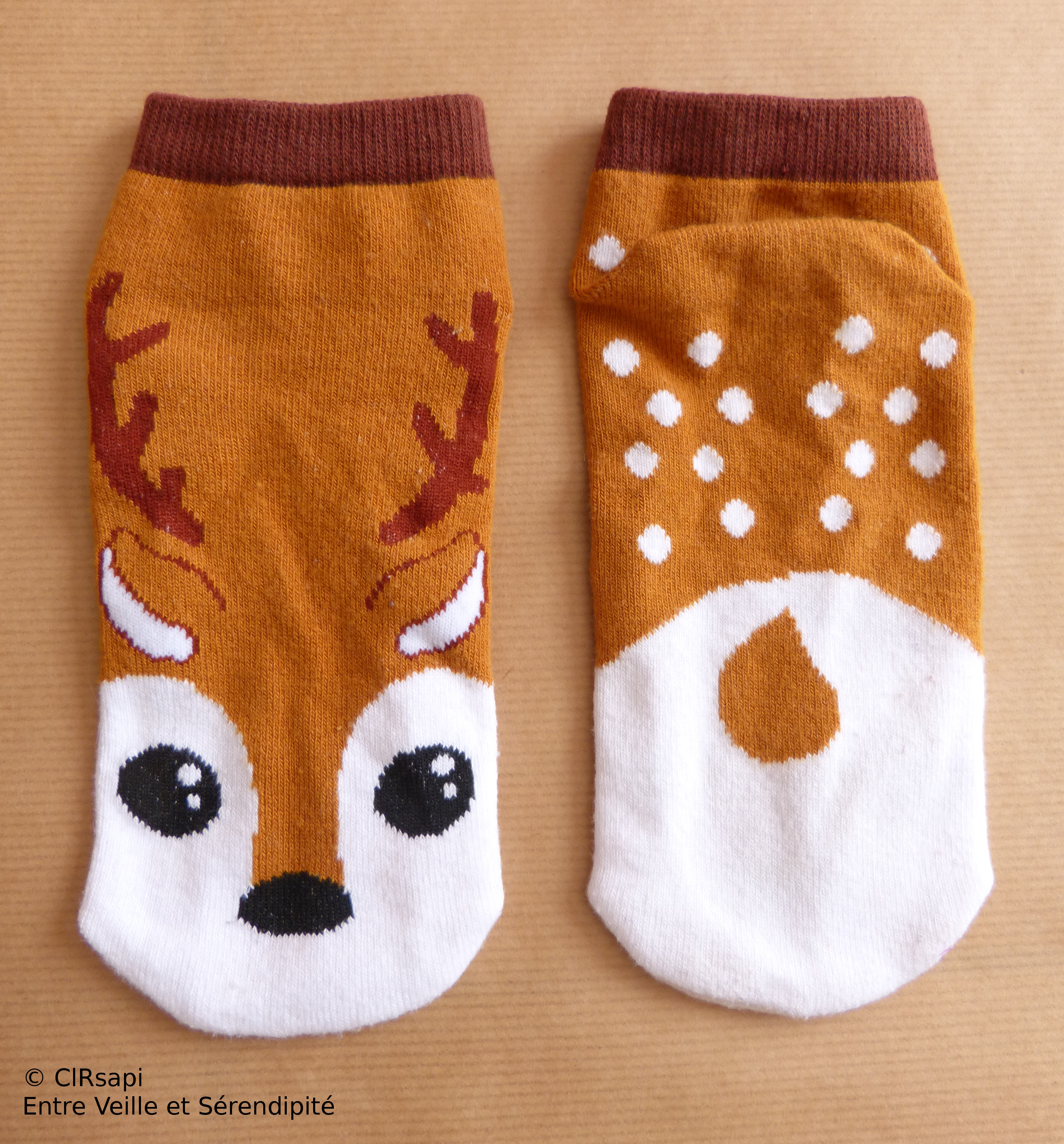 J’ai aussi rapporté des chaussettes un peu particulière. Pour commencer des chaussettes daims !! Je vous montre le verso, car quand on se mets sur la pointe des pieds, il y a la queue du daim qui apparaît ! C’est hyper « kawaï » !