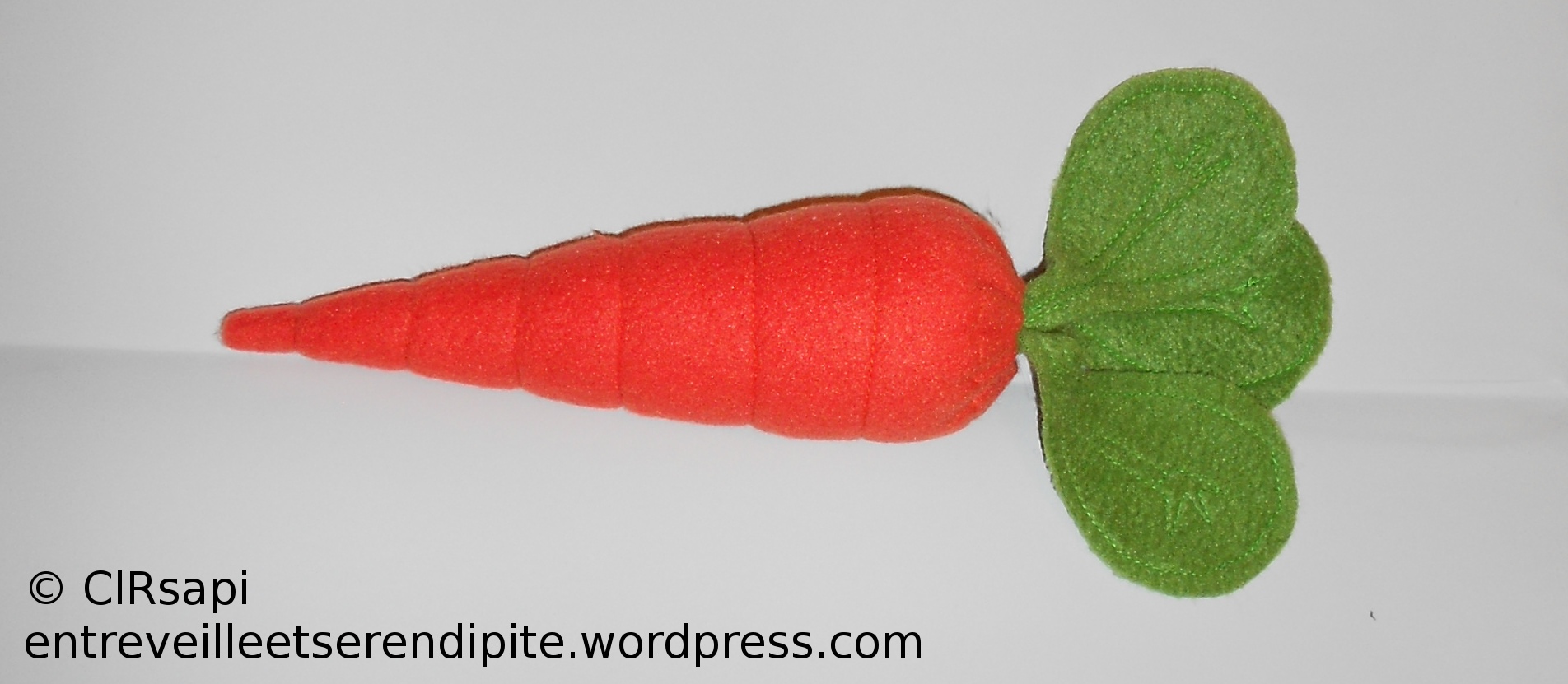 Mais la seule chose qui me manquait c’était le doudou carotte ! J’ai bien pensé au doudou carotte de Super Filleul (trouvé chez le suédois) mais j’ai pas osé lui emprunter pour 2 semaines… Bon, pour y remédier, il me restait plus qu’une seule solution : fabriquer un doudou carotte !!