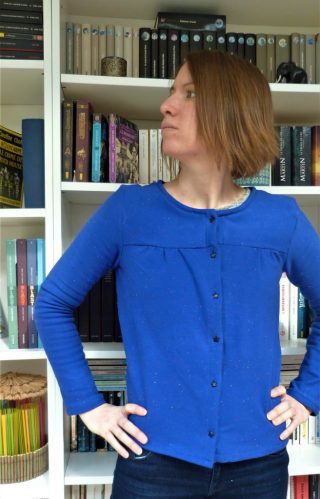 Le col est un peu grand, il me semble avoir voulu allonger les pans (pff je n’ai plus de mémoire !), et du coup il tombe un peu sur les épaules, mais ça va.