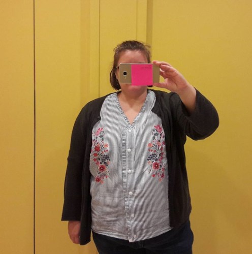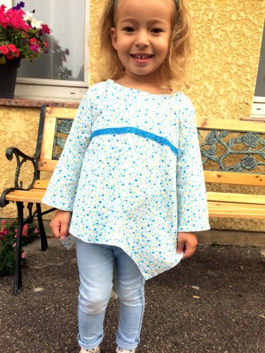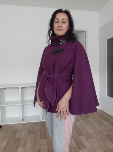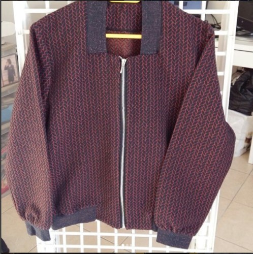 C’est un vêtement pour lequel j’ai pris plaisir à coudre, malgré les mètres de biais à coudre ;-), en même temps, c’est ma faute, je n’ai pas suivi le patron à partir de cette étape. Je trouve que la veste aurait été un peu trop courte, du coup, pour garder la longueur, j’ai choisi de poser un biais tout le long, pour remplacer les « rentrées ». Assez de blabla, la voici en photo :