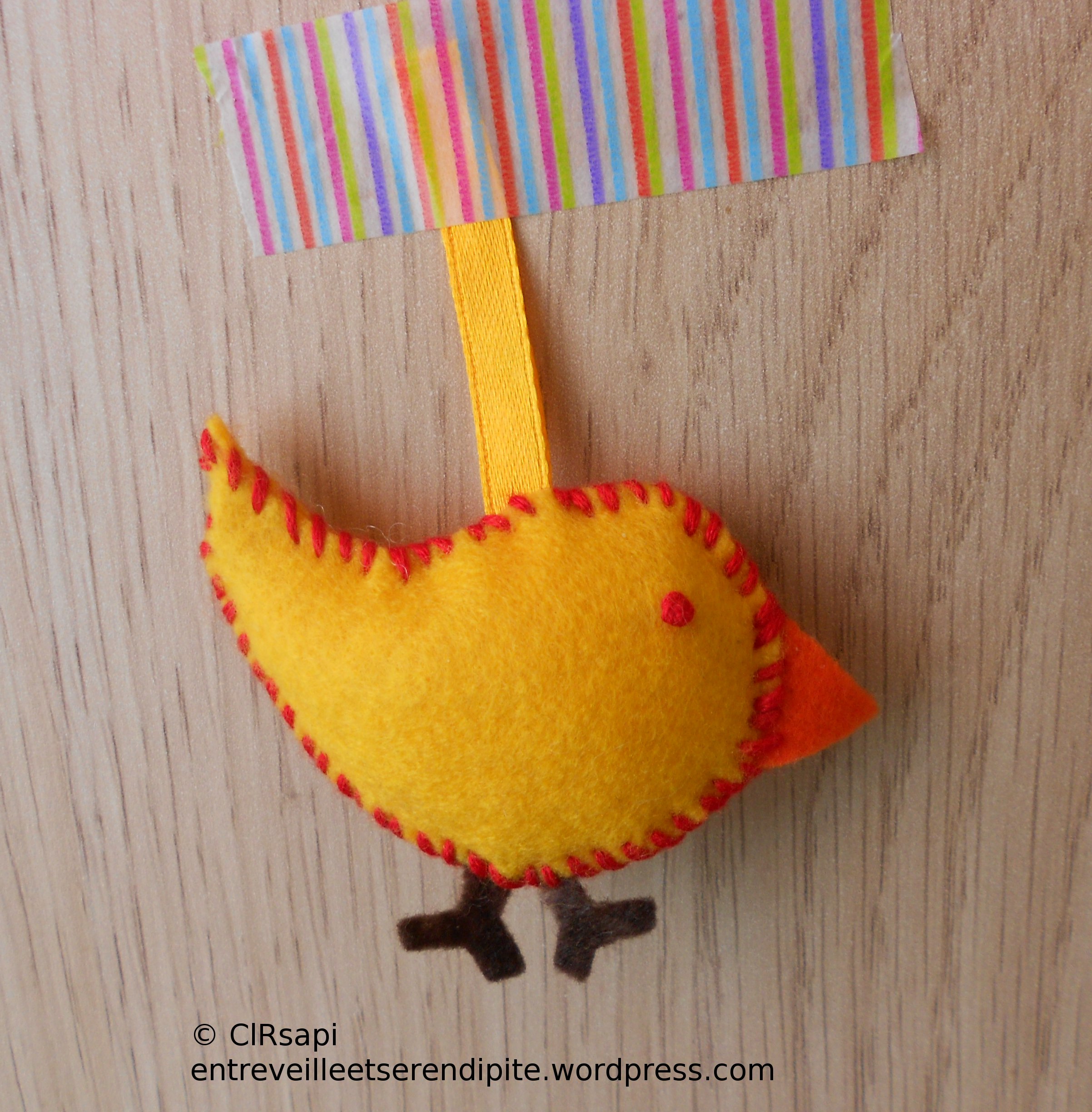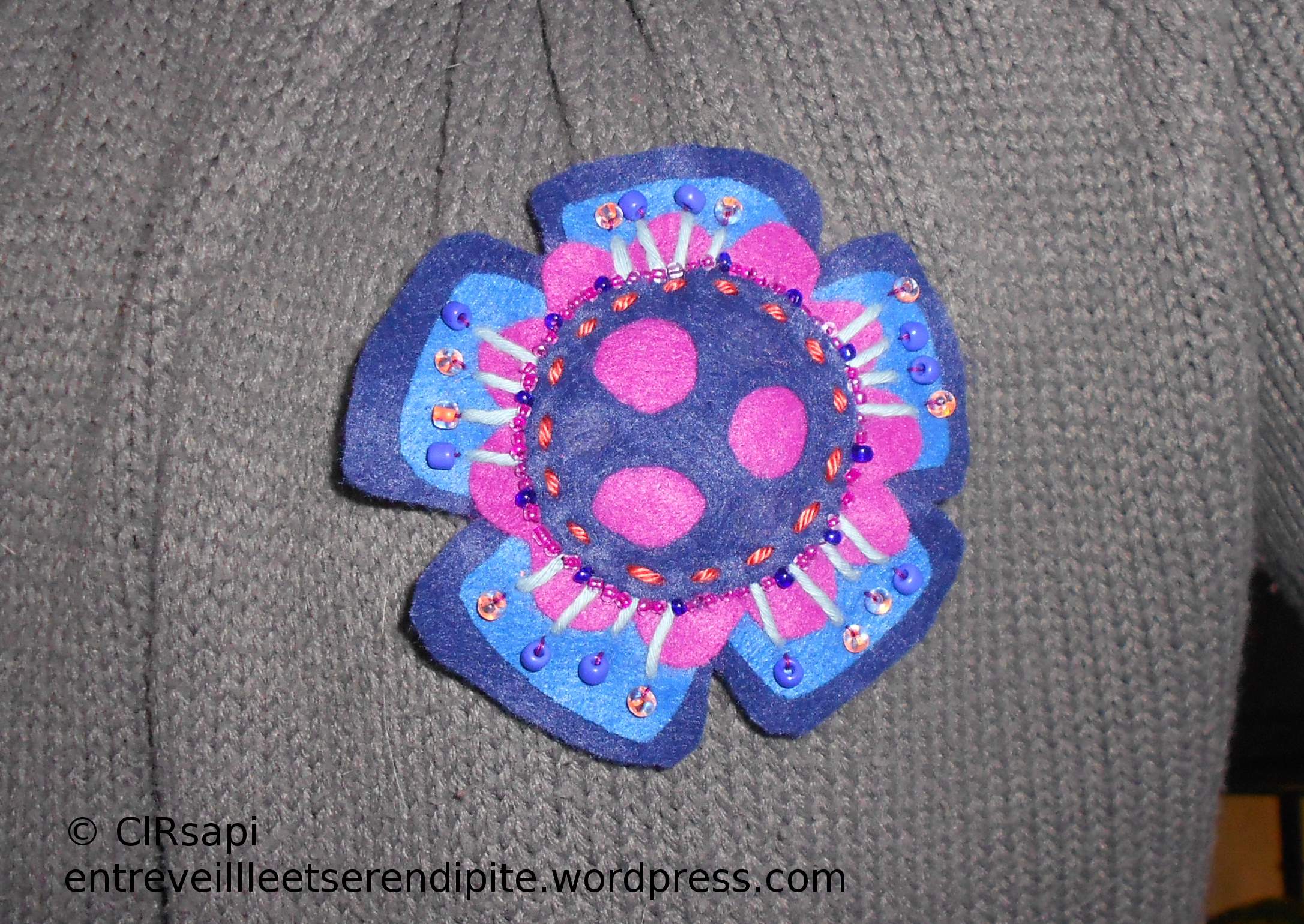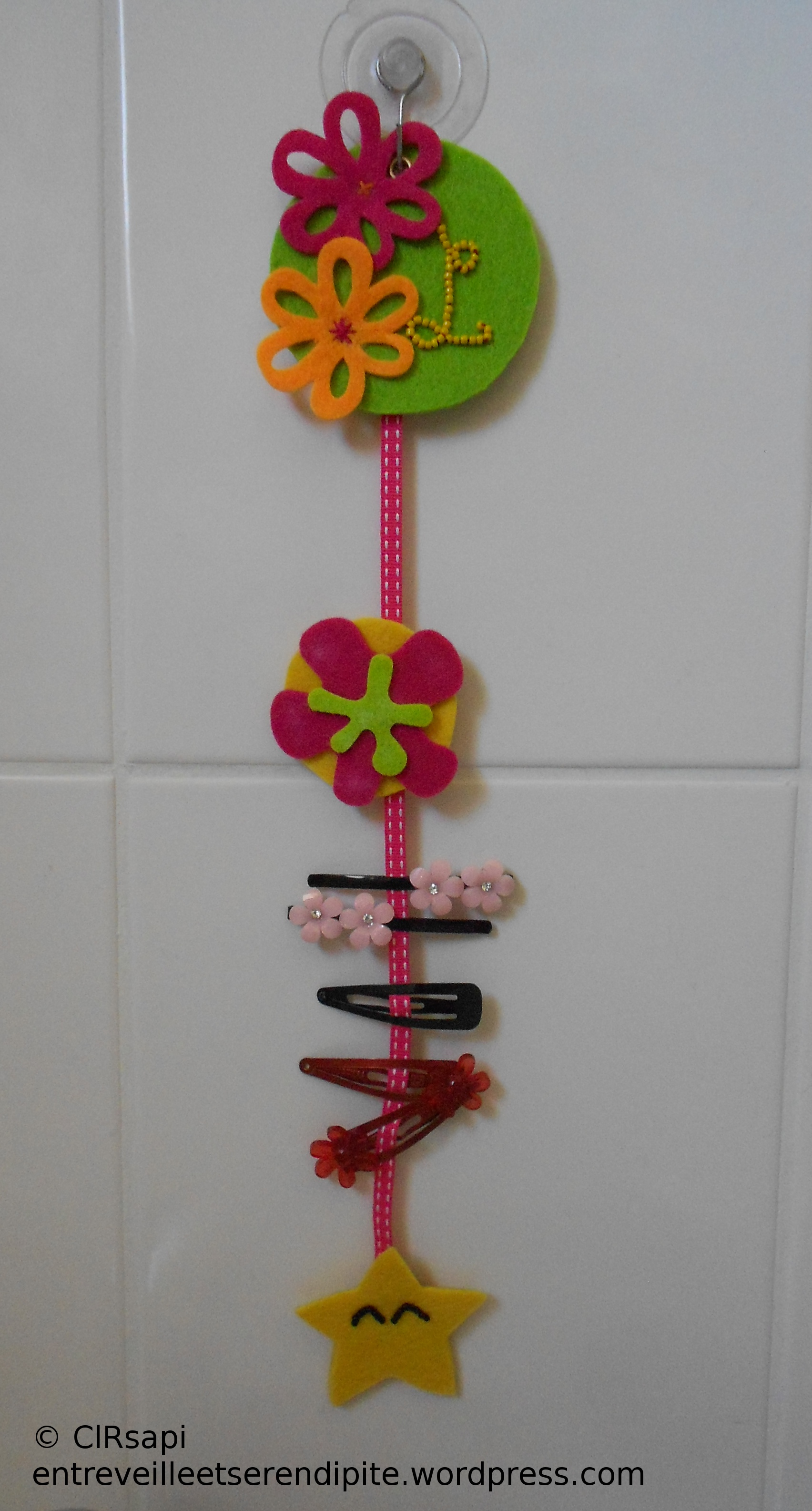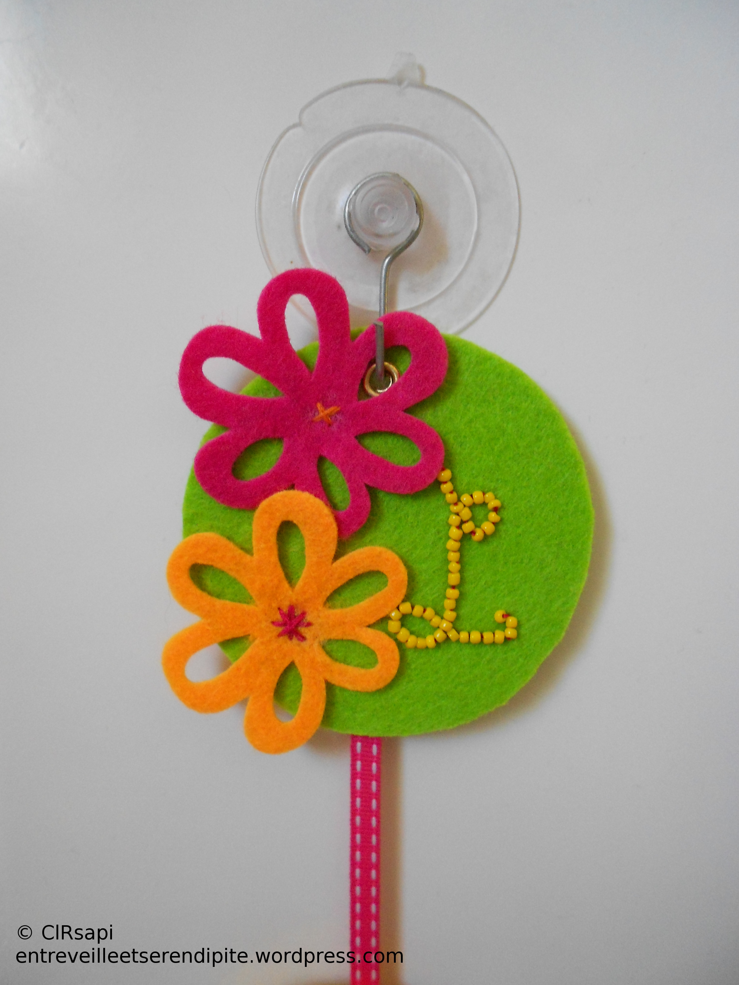 2ème étape : vous devez faire des trous au centre de chaque pièce de feutrine. Pour cela j’ai d’abord fait un trou à l’aide d’une aiguille à broder, puis, pour agrandir le trou j’ai utilisé une grosse aiguille en plastique.